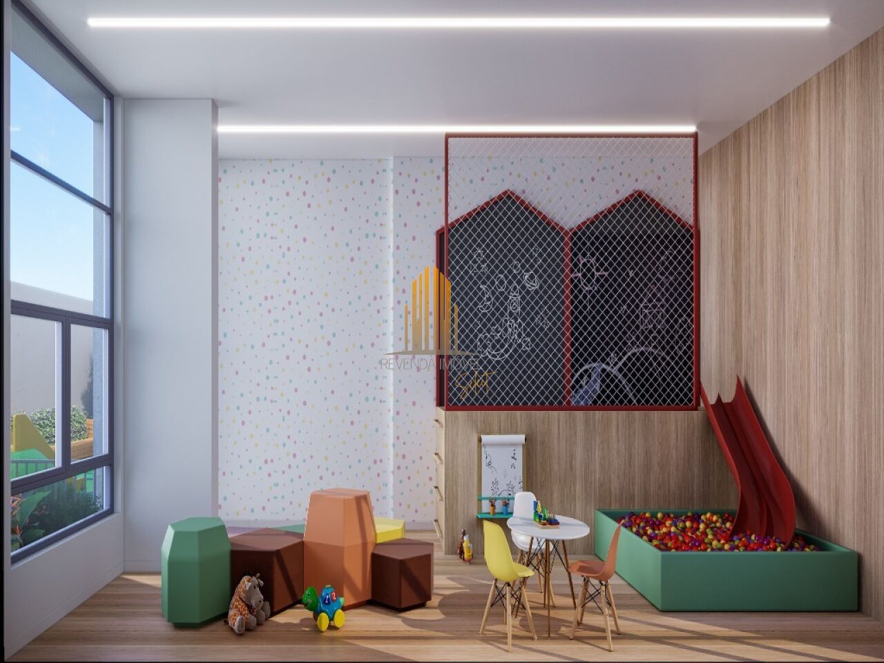 Area de lazer: Brinquedoteca, Churrasqueira cond., Elevador social, Espaço gourmet, Fitness, Piscina adulto, Piscina infantil, Playground, Portaria, Quadra poliesportiva, Sala de jogos, Salão de festas, Segurança.