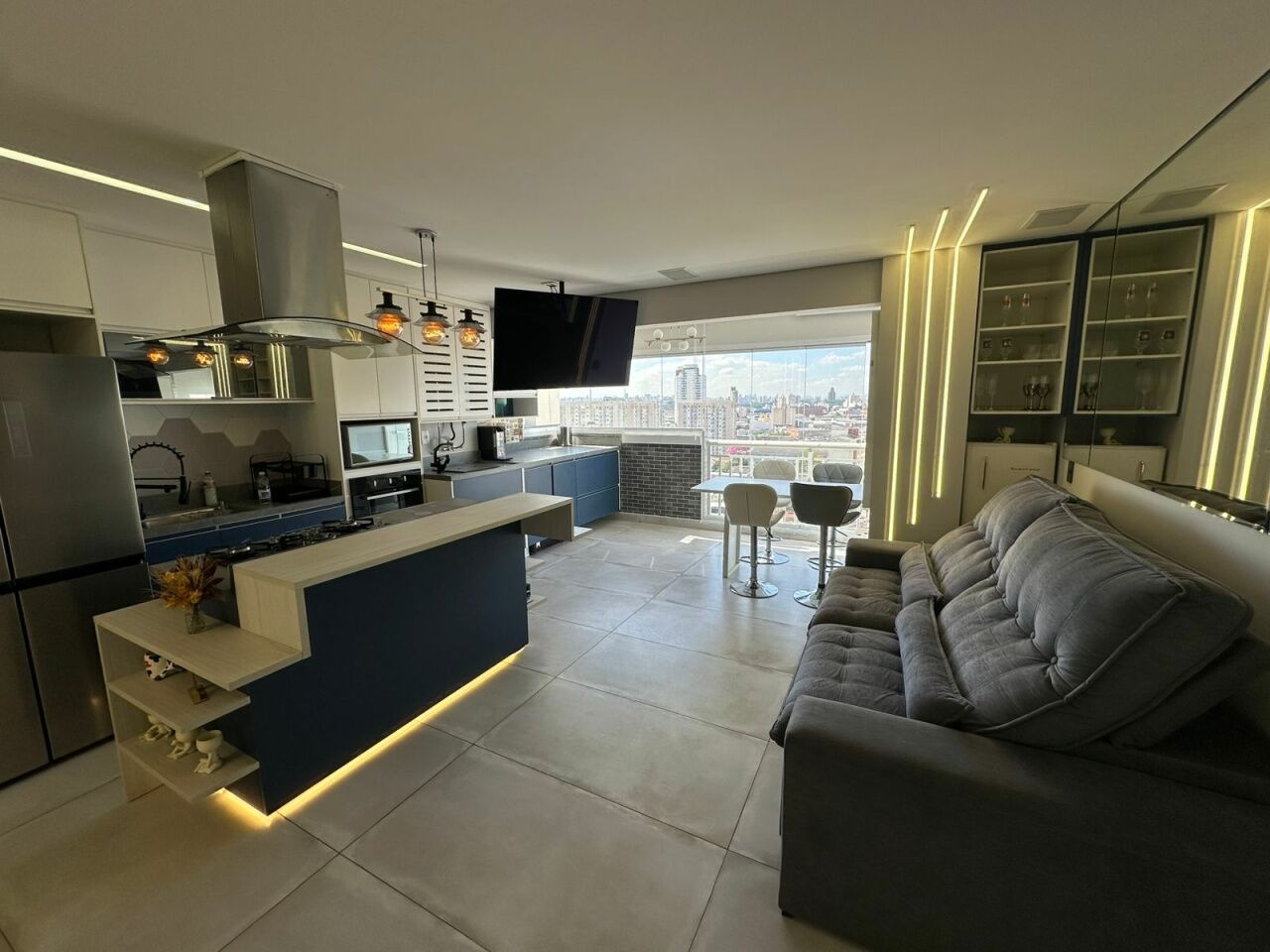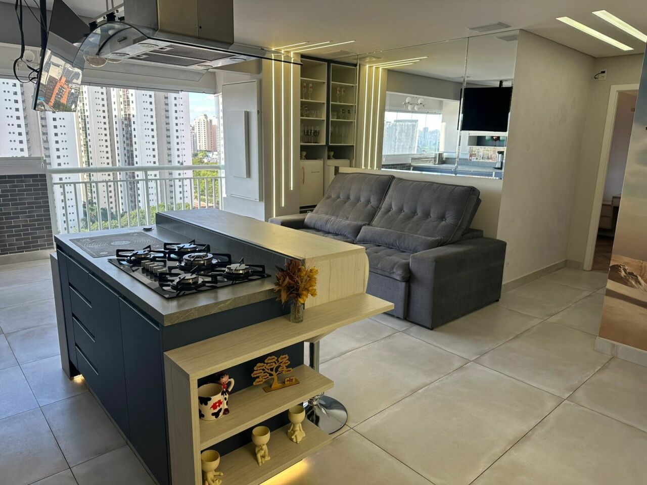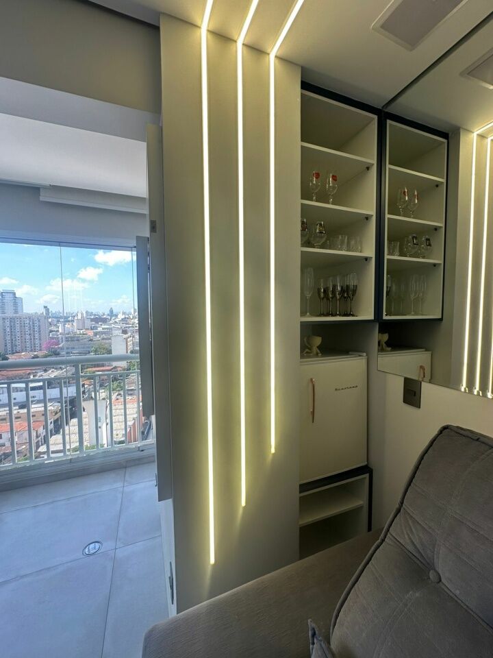 Todos os ambientes são totalmente planejados, e na venda está incluído o imóvel com porteira fechada: embutidos e planejados + cama, sofá, cooktop, forno elétrico, micro-ondas, geladeira, depurador, máquina de lavar/secar e 2 TVs (sala e suíte).
