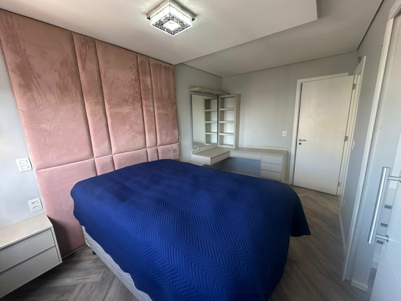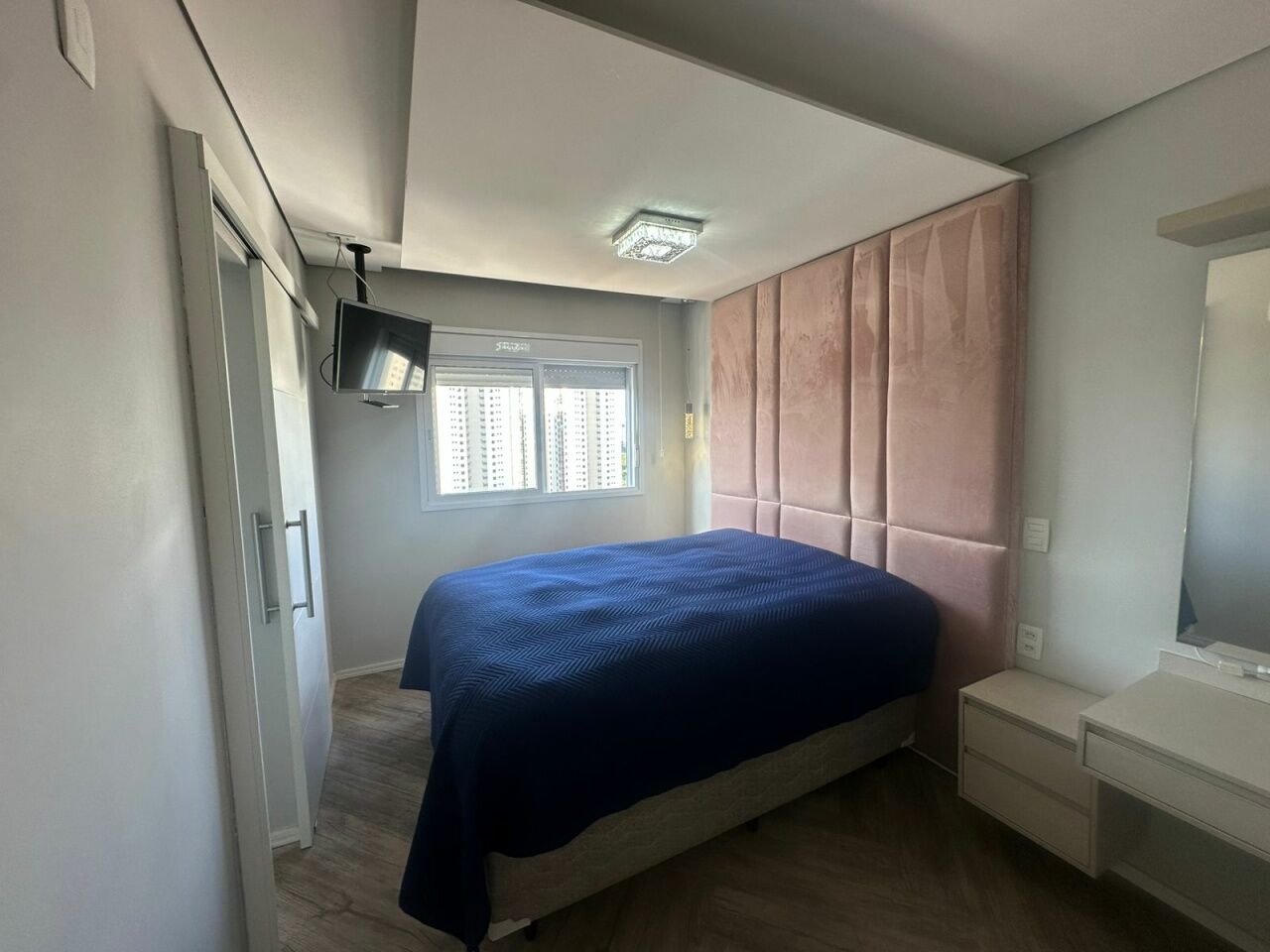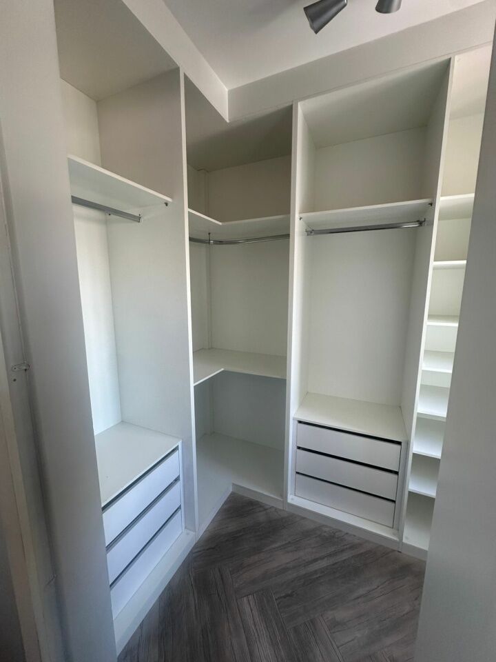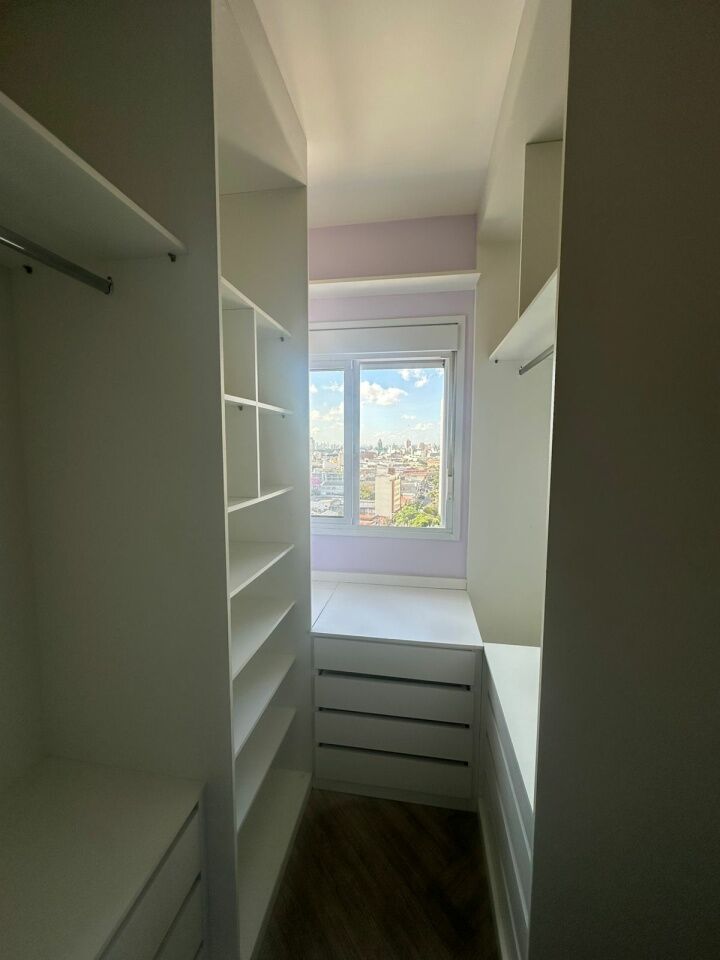 Apartamento de 62m² com 2 dormitórios, sendo 1 suíte; o segundo dormitório está adaptado como closet, facilmente reversível. Conta ainda com 1 banheiro social e 1 vaga de garagem.