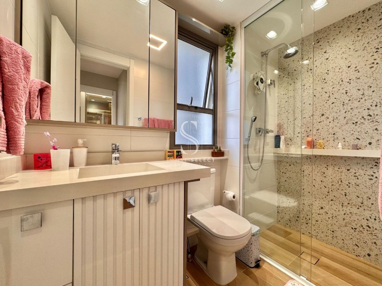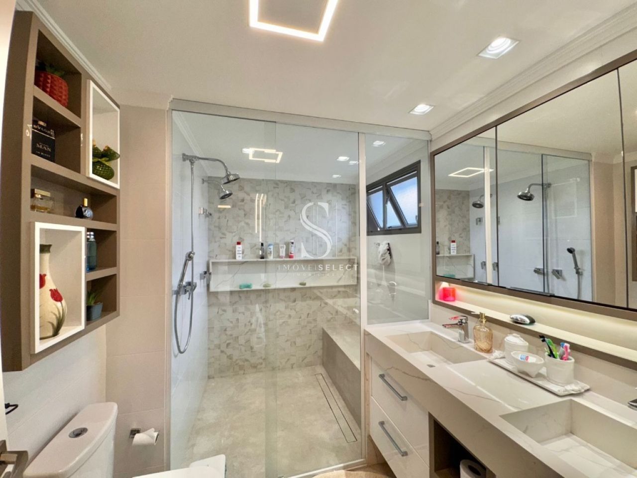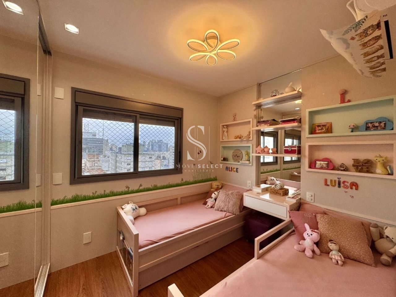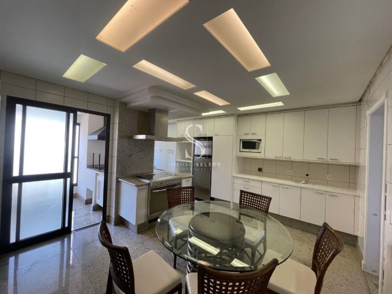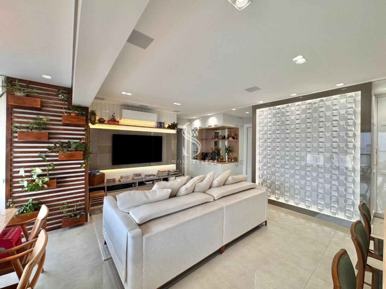 Apartamento em andar alto, com living amplo, sala de jantar, lavabo e terraço, cozinha planejada com armários Kitchens. Na parte íntima, sala de TV, acesso direto da cozinha (passagem íntima), 04 dormitórios, sendo 02 suítes, todos com armários Ornare, suíte máster com closet. Apto com hall privativo. 04 amplas vagas de garagem. Lazer completo no condomínio.