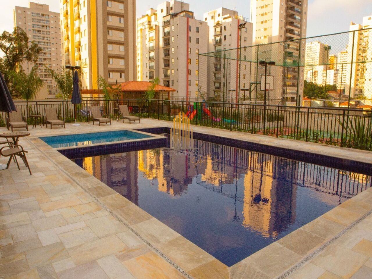 Condomínio conta com: Churrasqueira, Elevador de serviço, Elevador social, Pet place, Piscina adulto, Academia, Quadra poliesportiva, Playground, Portaria 24 horas, Sala de jogos, Segurança.