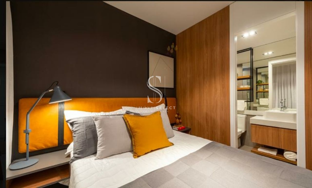 Studio de 47m² com 1 dormitório/sala, cozinha, banheiro, varanda, sem vaga.